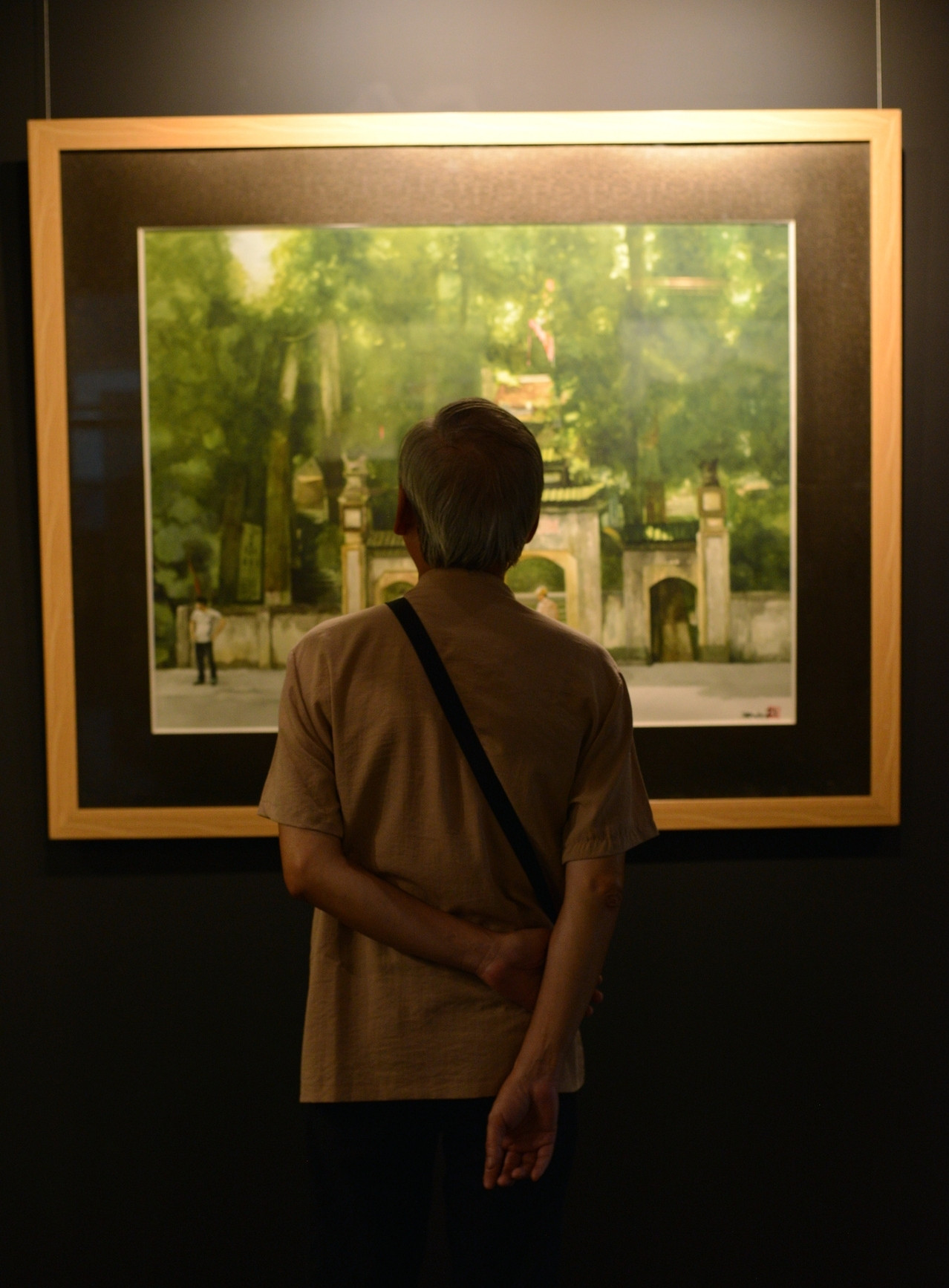 Tại triển lãm “Bình minh châu thổ” của con trai – họa sĩ Nguyễn Hồng Quân, nghệ sĩ Phi Điểu chậm rãi thưởng thức từng tác phẩm, vui khi anh vẫn yêu nghề và sáng tạo.