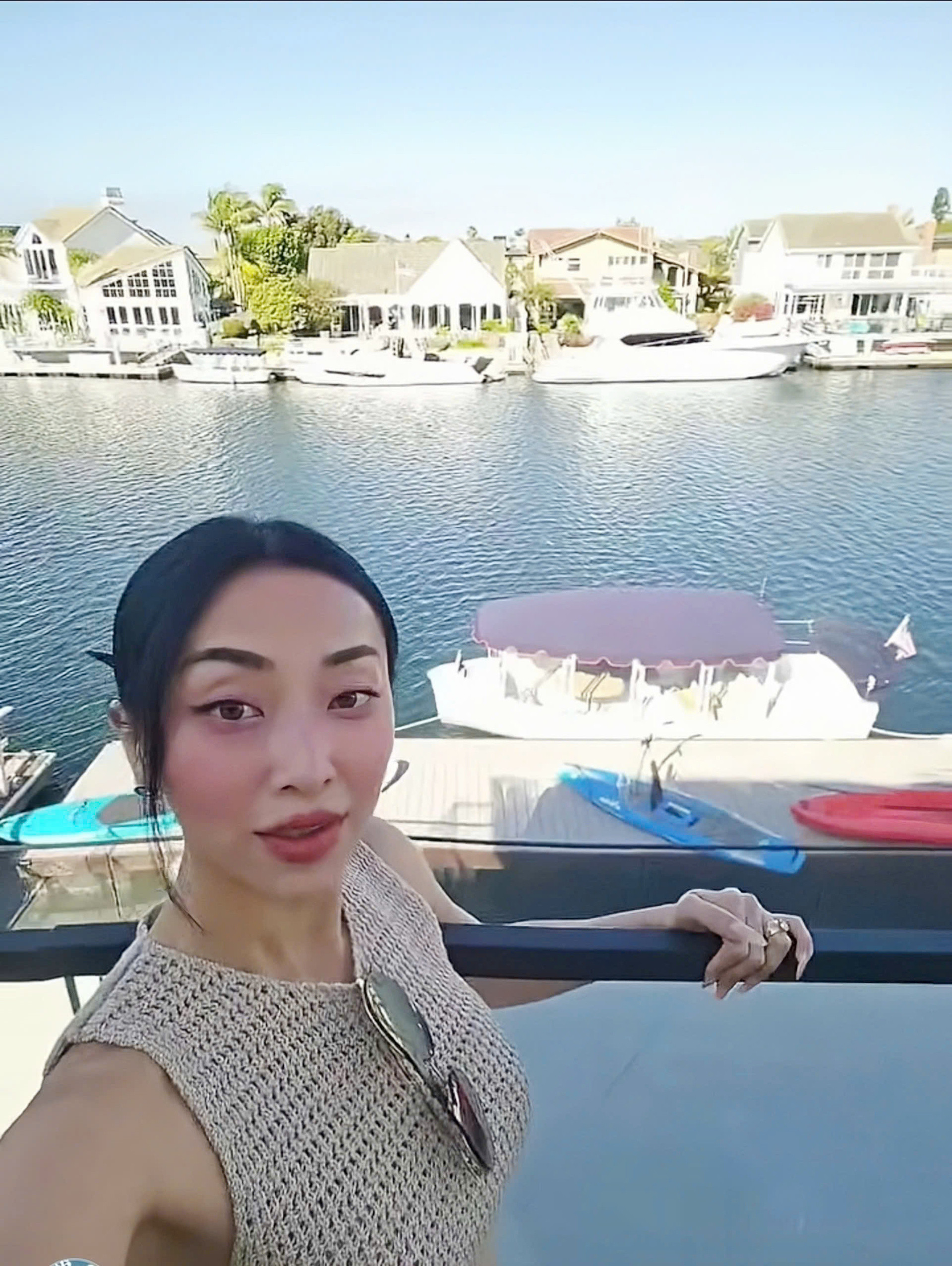 Hương Thủy tiết lộ chiếc thuyền vừa được chuyển đến bến riêng nhà chị hôm trước, Như Ý là đồng nghiệp đầu tiên được ngồi thuyền ra biển.