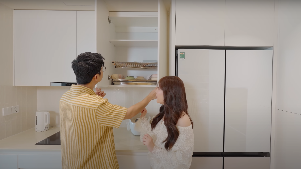 Căn bếp được cặp đôi gọi là “trái tim của ngôi nhà”. Cả hai quyết định đập bỏ một bức tường treo TV, để tạo khu vực bếp mở, kết nối các không gian với nhau.