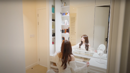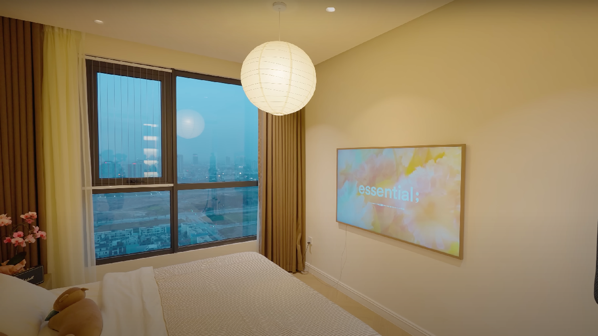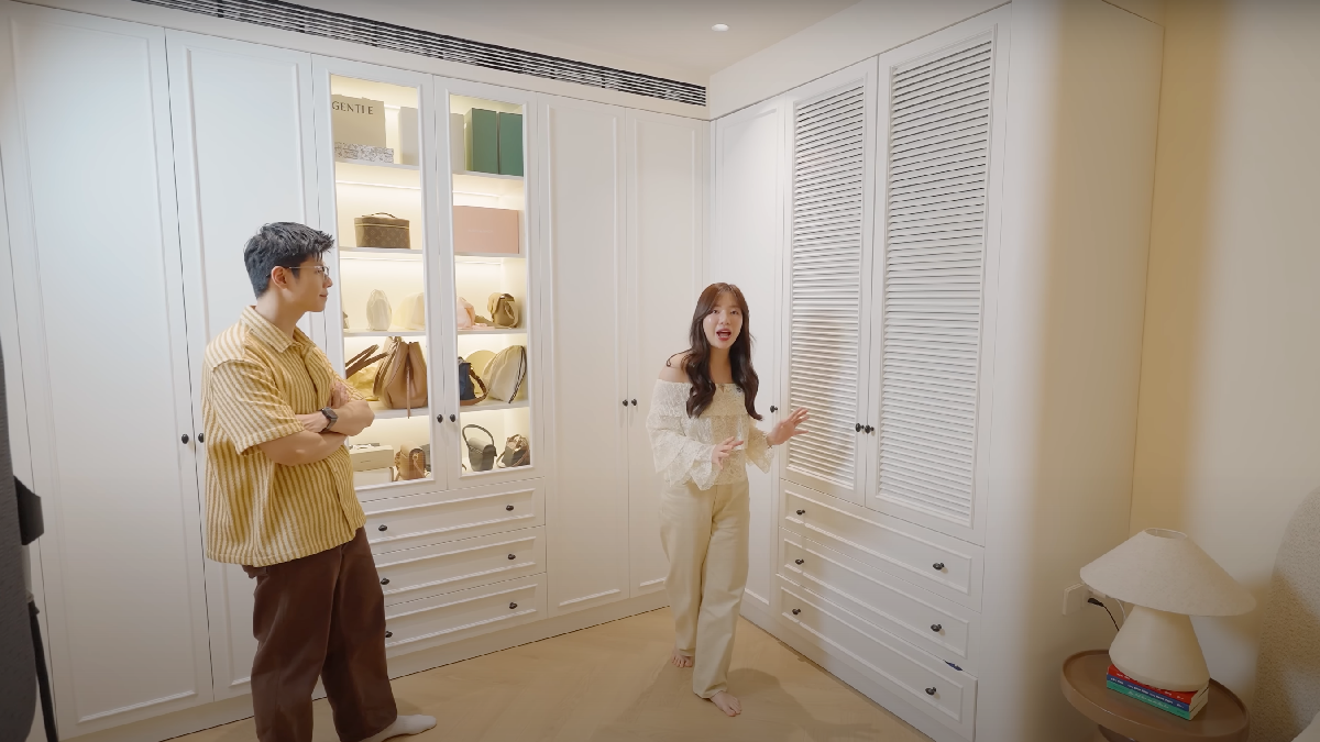 Phòng của cặp song sinh Cue và Cam được trang trí đáng yêu. Phòng ngủ chính của hai vợ chồng rộng rãi với tủ quần áo kịch trần lớn được MC Hương Giang chăm chút kỹ, để làm nền cho các video của cô. Đây là căn phòng đắt tiền nhất trong nhà với loạt nội thất giá thành cao như giường, tủ trang điểm, hệ thống đèn…