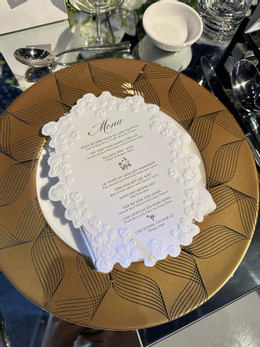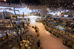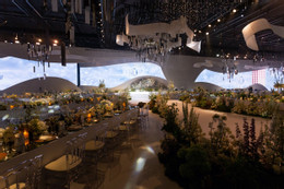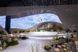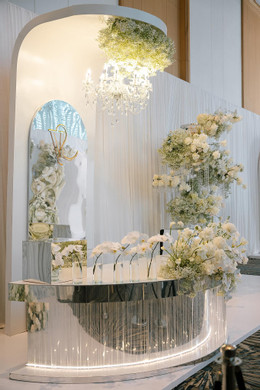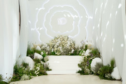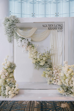 Ở khu vực lễ đường, Anh Đức và bà xã sử dụng họa tiết uốn lượn tạo độ uyển chuyển và mềm mại. Cặp đôi bày tỏ: “Chính giây phút này cả hai như hòa quyện vào nhau, tuy hai là một – Một đời, một nhà và một tình yêu”.