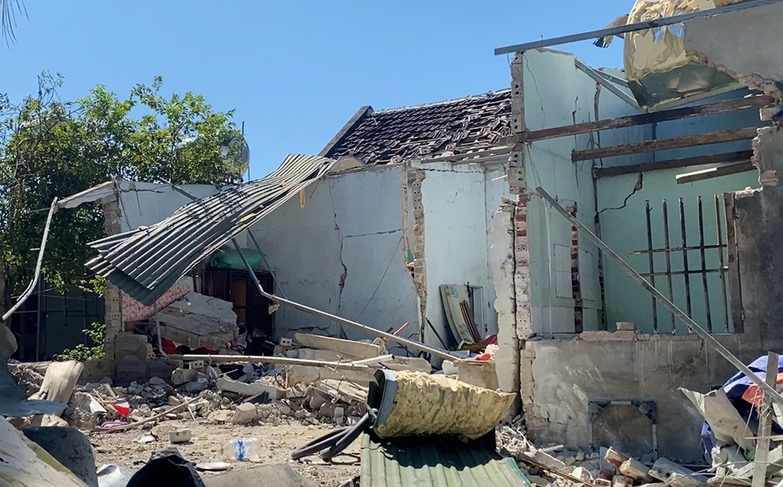 Một phần căn nhà của vợ chồng ông Hoàng Văn Quang, ở xã Tam Hợp, huyện Quỳ Hợp, Nghệ An, hư hỏng nặng sau vụ nổ. (Hình: Doãn Hòa/Tuổi Trẻ)