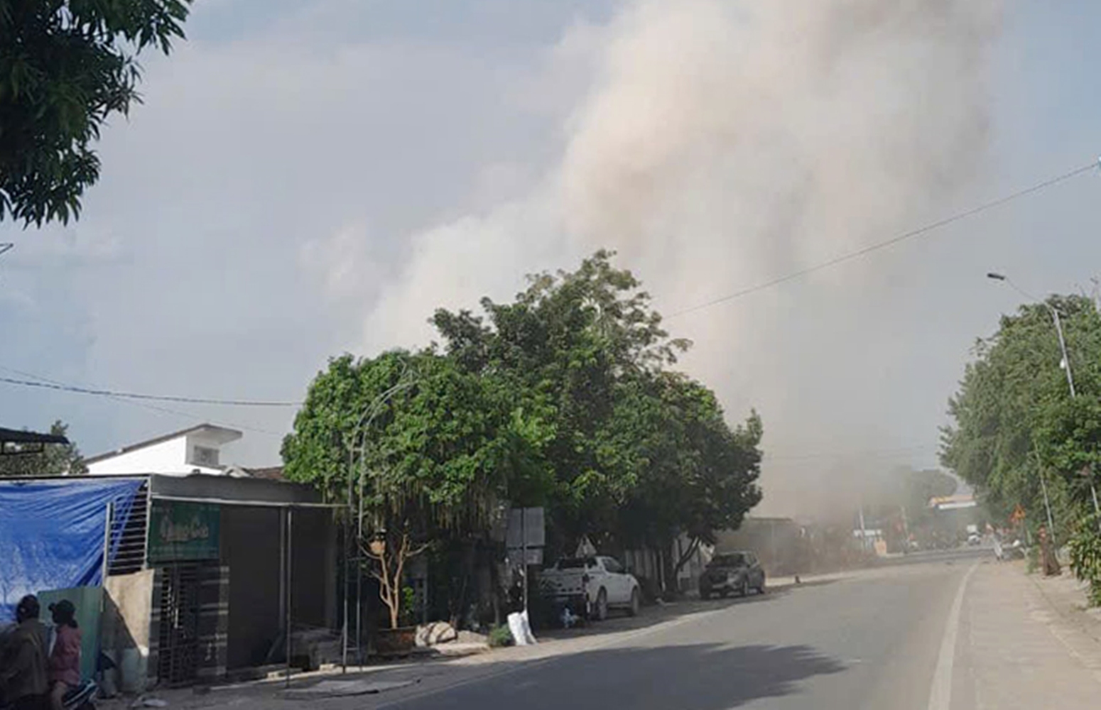 Khói bụi bốc lên mù mịt từ hiện trường vụ nổ, chiều 29 Tháng Tám. (Hình: Hùng Lê/VNExpress)