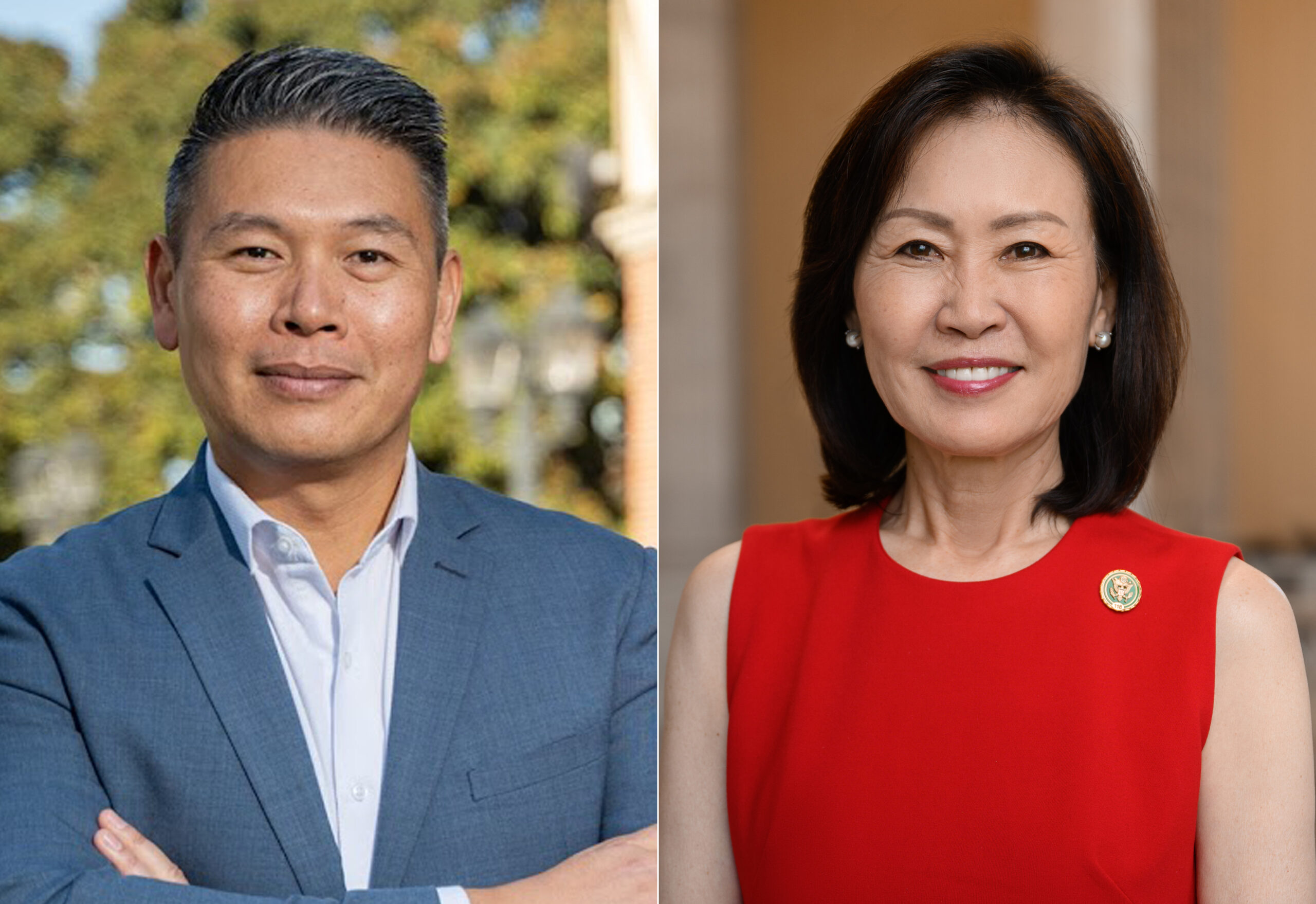 Luật Sư Derek Trần (trái) và Dân Biểu Michelle Steel, hai đối thủ trong cuộc tranh cử chức dân biểu liên bang Địa Hạt 45. (Hình: Ban tranh cử của Derek Trần và Michelle Steel)