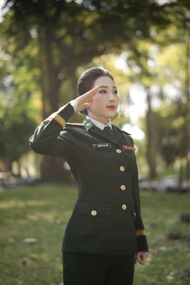 Những ngày qua, hình ảnh nữ chiến sĩ xinh đẹp tại Dinh Độc Lập gây sốt mạng xã hội. Cô là Trung úy Nguyễn Thị Thủy (sinh năm 1993, quê Bình Thuận), hiện công tác tại Đoàn nghệ thuật Bộ Tư lệnh Bộ đội Biên phòng.