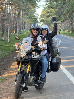 “Ban đầu tôi đưa bà ấy đi các điểm loanh quanh thành phố, rồi Vũng Tàu, Đồng Nai… cho quen. Sau đó, hai vợ chồng phượt vài trăm cây lên Bảo Lộc, Đà Lạt.