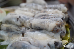 Từng lớp bánh cuốn trắng muốt, mềm mướt, phết thêm mỡ hành béo ngậy được đặt gọn gàng lên đĩa. Chả ăn kèm được thái miếng dày, đầy đặn. Khách có thể gọi thịt nướng, thịt viên ăn kèm theo ý thích. Nước chấm có màu nâu đẹp mắt, chua ngọt vừa phải. Đây là thành phần quan trọng để làm nên hương vị thơm ngon cho suất bánh cuốn.