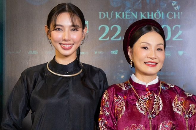 Siêu mẫu Minh Tú diện áo ống, tự tin khoe dáng thon. Phương Mỹ Chi chọn phong cách lịch sự, kín đáo với áo dài truyền thống, cô cũng là người hát chính nhạc phim.
