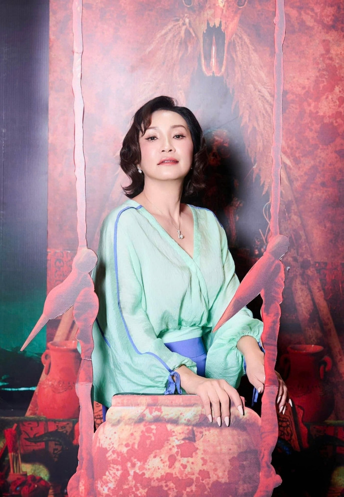 Nghệ sĩ Hồng Đào trẻ trung, nền nã, khác hẳn tạo hình trên phim. Nữ diễn viên cho thấy khả năng nhập vai, chiều sâu diễn xuất với vai mệ Bích – người phụ nữ đứng đầu gia tộc.