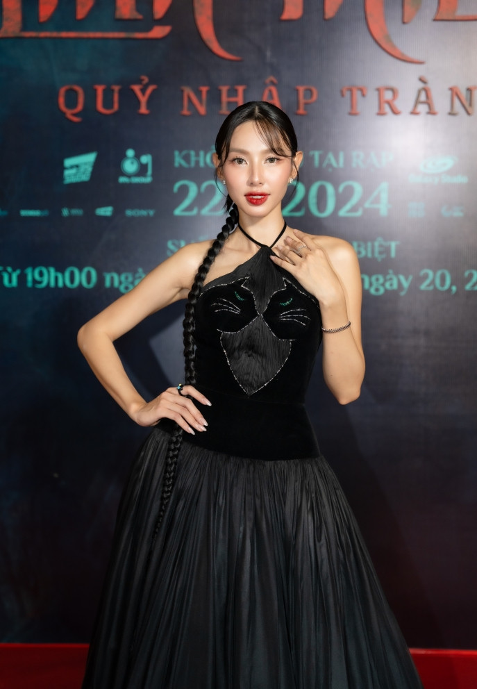 Hoa hậu Thùy Tiên khoe sắc vóc rạng rỡ, xinh đẹp trong bộ đầm cổ yếm. Trong phim “Linh miêu”, cô đóng vai người hầu tên Phượng, đồng thời nắm giữ nhiều bí mật của nhà Dương Phúc. Đây cũng là tác phẩm điện ảnh đầu tiên của Thùy Tiên. Hoa hậu cảm ơn sự ủng hộ của khán giả và sẵn lòng lắng nghe mọi góp ý về diễn xuất để cải thiện.
