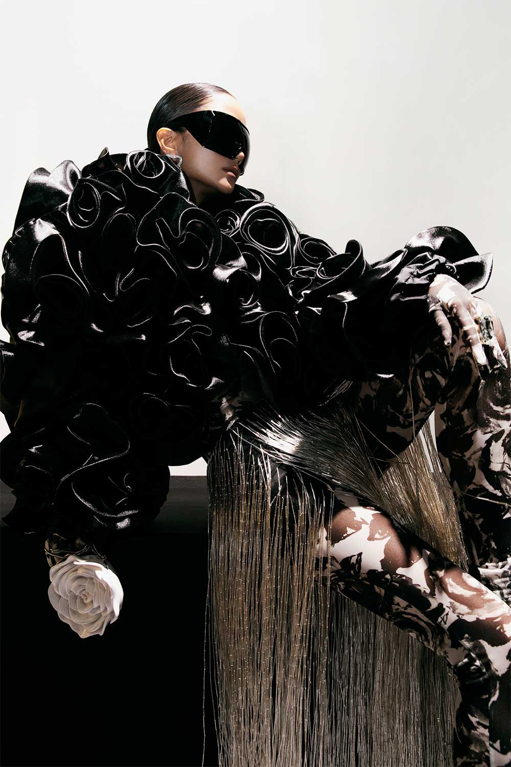 Nhiều thiết kế mất hàng trăm giờ thực hiện thủ công. Anh phối màu theo công thức tương đồng để tạo chiều sâu hoặc tương phản để gây ấn tượng thị giác mạnh. Các đường kẻ, hoa 3D cỡ lớn, chấm bi kết hợp hoa… tạo điểm nhấn cho trang phục.
