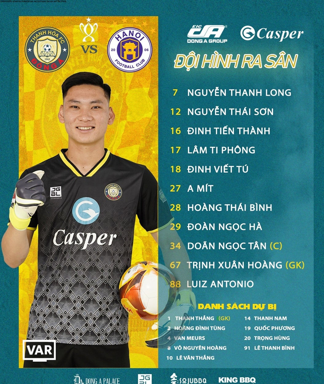 Đội hình xuất phát Thanh Hoá vs Hà Nội
