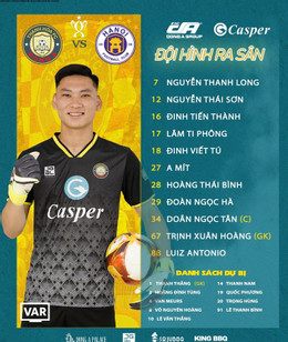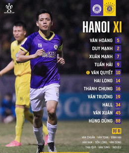 Hà Nội FC: Văn Hoàng, Duy Mạnh, Xuân Mạnh, Tuấn Hải, Văn Quyết, Hai Long, Thành Chung, Văn Trường, Hall, Văn Xuân, Hùng Dũng.