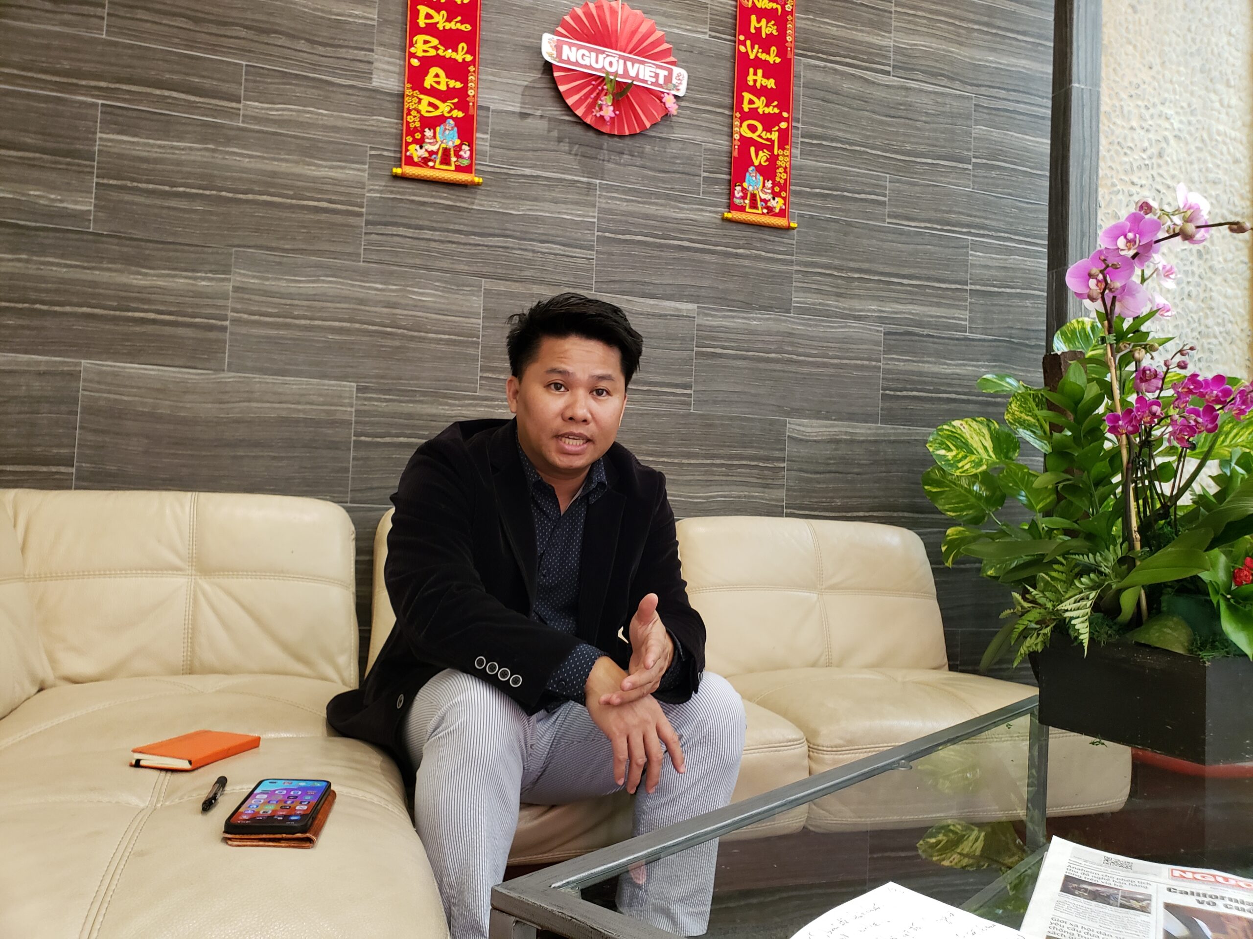 Tiến Sĩ Alex Thái Võ tại tòa soạn nhật báo Người Việt. (Hình: Đằng-Giao/Người Việt)