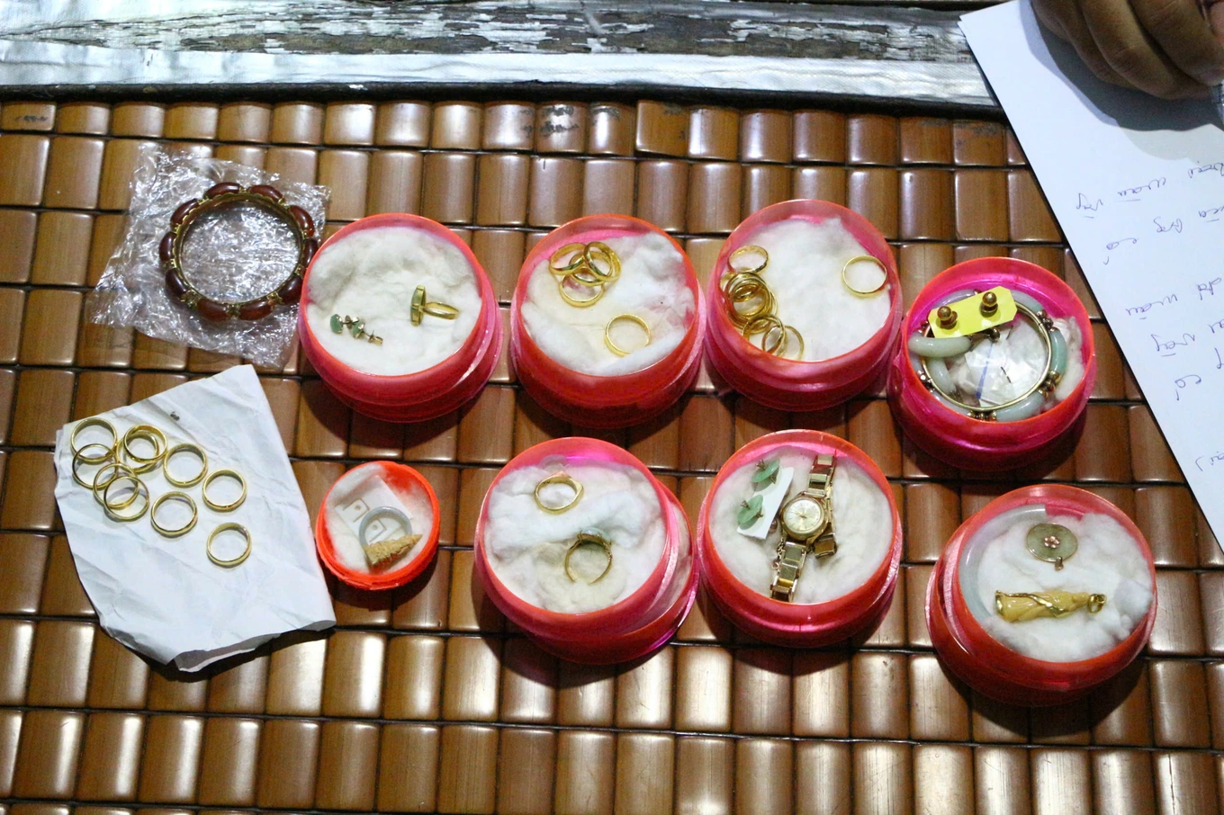 Tại đồn, bà Tư cho biết, khi mở tủ kiểm tra giấy tờ thì phát giác bị mất 100 lượng vàng 24K, một nhẫn hột xoàn, một sợi dây chuyền 1 lượng vàng 18K và một số nhẫn vàng 24K.