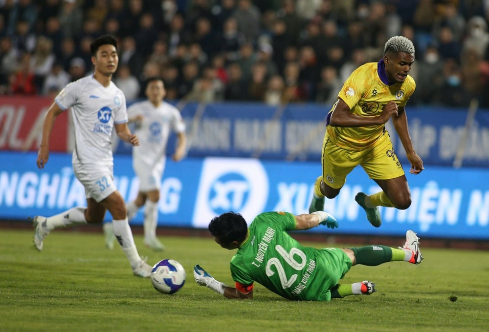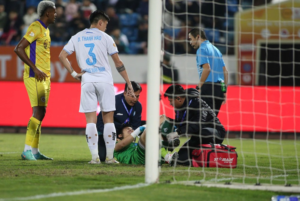 Dù vậy, thủ môn quê Nghệ An bị đau sau pha va chạm với ngoại binh của đội khách. Thủ môn Liêm Điều được chỉ định khởi động nhưng may cho chủ nhà khi Nguyên Mạnh vẫn có thể tiếp tục thi đấu.