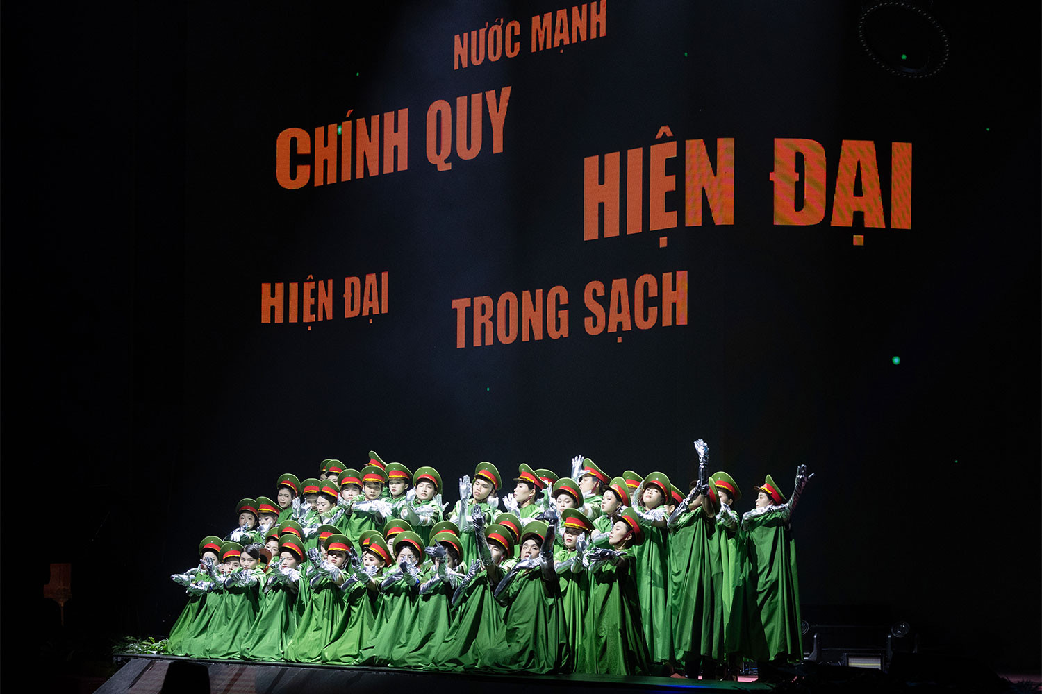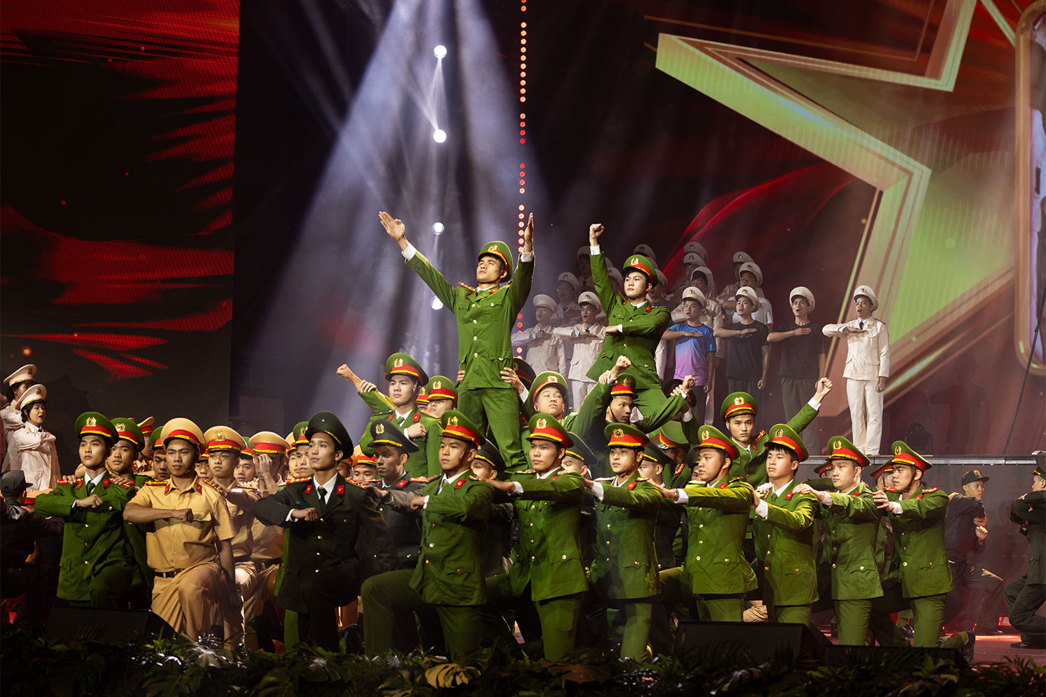 Vinh quang Công an nhân dân Việt Nam là một bức tranh nghệ thuật đa sắc, kết hợp hài hòa các loại hình ca, múa, nhạc, kịch…