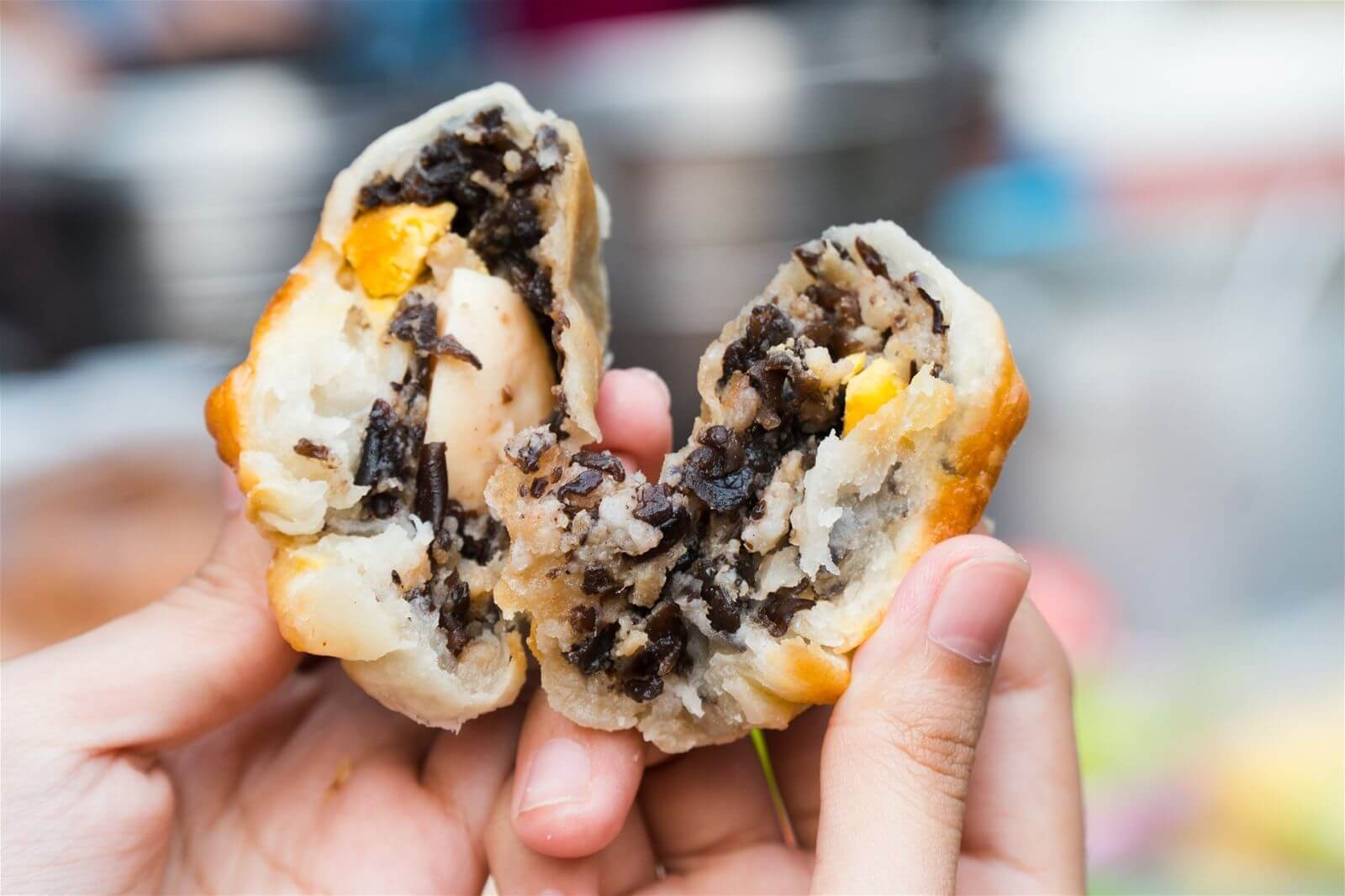 Bánh khi ra lò có vỏ giòn nhưng cắn không bị vỡ vụn. Thực khách nên sử dụng khi nóng để cảm nhận được vị thơm của thịt xíu, vị béo ngậy của thịt mỡ cùng vị cay cay của hạt tiêu.