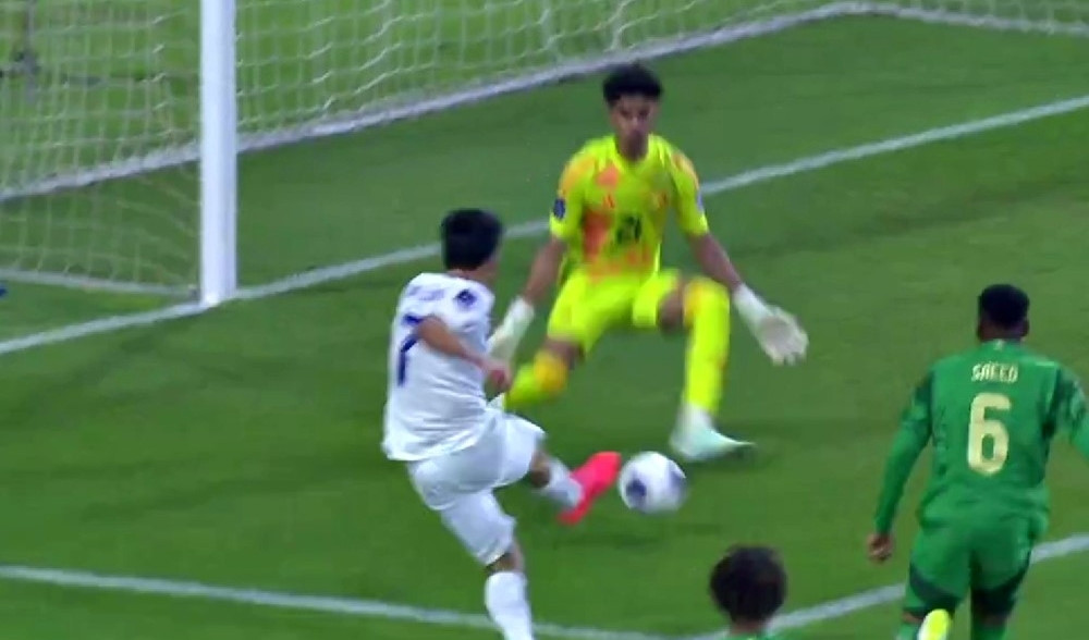 Xuất phát từ pha phát bóngcủa thủ môn U17 Uzbekistan, Sadriddin Khasanov thực hiện pha solo từ gần giữa sân. Cầu thủ mang áo số 7 biến các hậu vệ áo xanh thành những kẻ học việc trước khi dứt điểm “xâu kim” thủ môn đối phương.