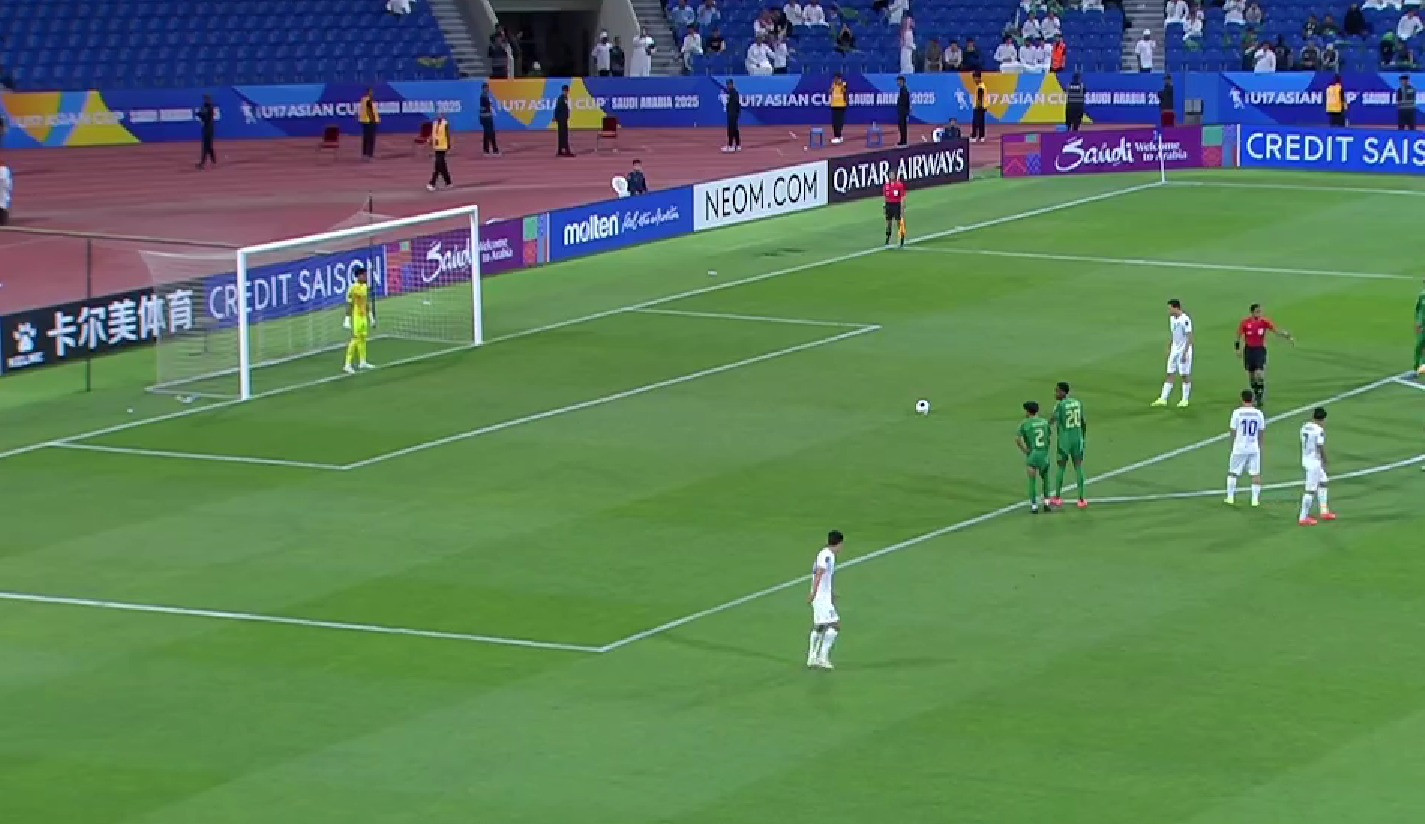 Trên chấm 11m, Muhammad Khakimov, cầu thủ sinh năm 2009 – nhỏ tuổi nhất trận chung kết không bỏ lỡ cơ hội đánh lừa thủ môn Abdulrahman Al-Otaibi để mở tỷ số cho U17 Uzbekistan.