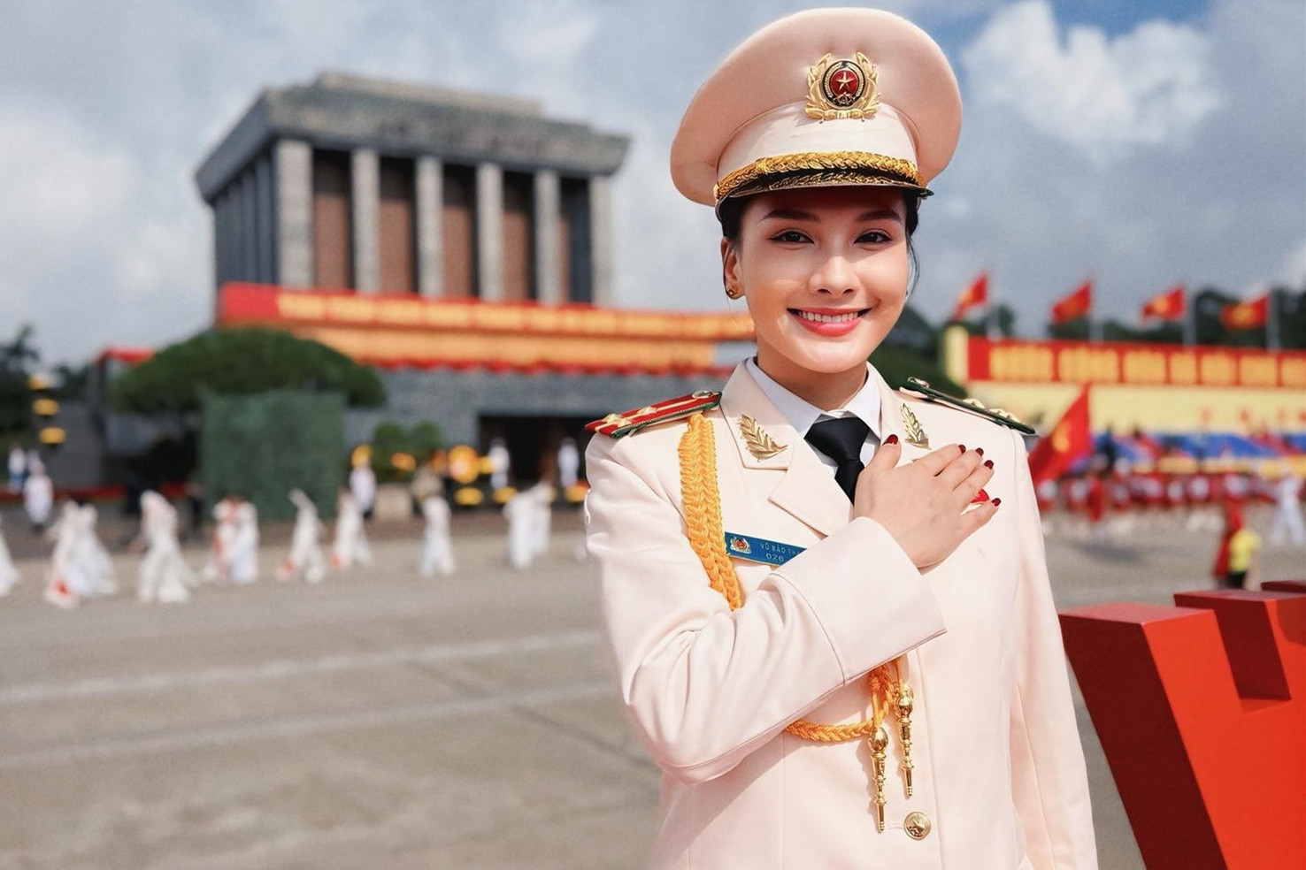 Bảo Thanh trong màu áo công an, Cục trưởng Xuân Bắc cười tươi giữa dàn nghệ sĩDiễn viên Bảo Thanh đẹp rạng ngời trong màu áo công an nhân dân. Ca sĩ Phương Thanh chụp ảnh lưu niệm bên Cục trưởng Xuân Bắc và các đồng nghiệp.