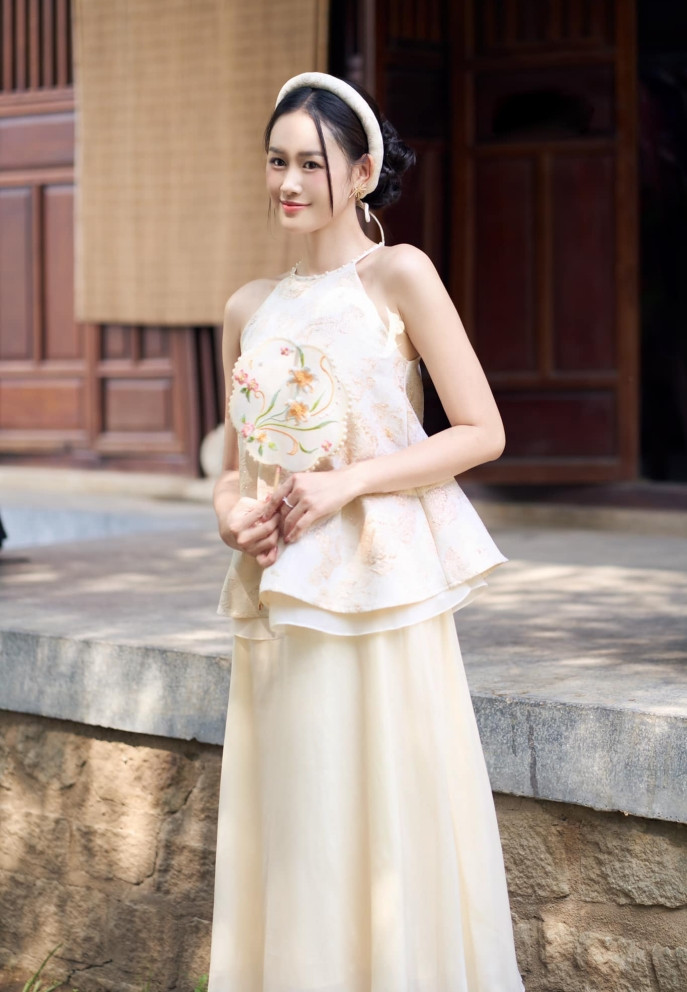 Với vóc dáng cao ráo, cô có thể diện nhiều trang phục với phom dáng khác nhau. Thỉnh thoảng, diễn viên kết hợp cùng phụ kiện trang sức hay kiểu tóc mới tạo sự đa dạng.
