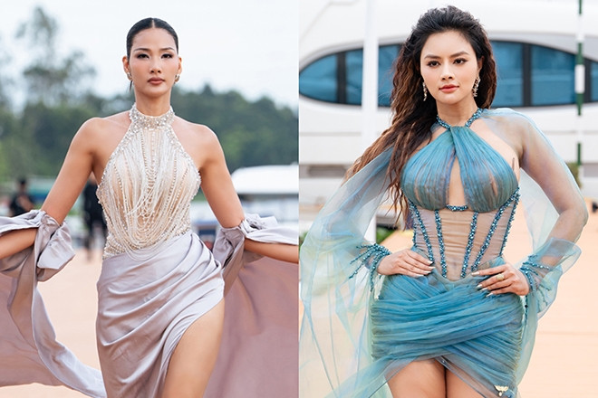 Hoàng Thùy khéo xử lý sự cố, Vũ Thu Phương xuất hiện trên du thuyền triệu đôÁ hậu Hoàng Thùy khoe kỹ năng trình diễn nổi bật khi khéo xử lý sự cố váy áo, Vũ Thu Phương diện váy cắt xẻ, catwalk trên du thuyền triệu đô.