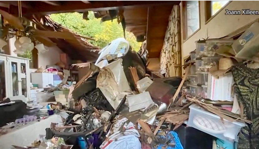 “Tôi nhìn vào phòng sinh hoạt gia đình thì thấy gỗ văng tứ tung,” bà giải thích. “Cửa sổ bể nát. Trông như toàn bộ căn nhà vừa bị kích nổ vậy.”