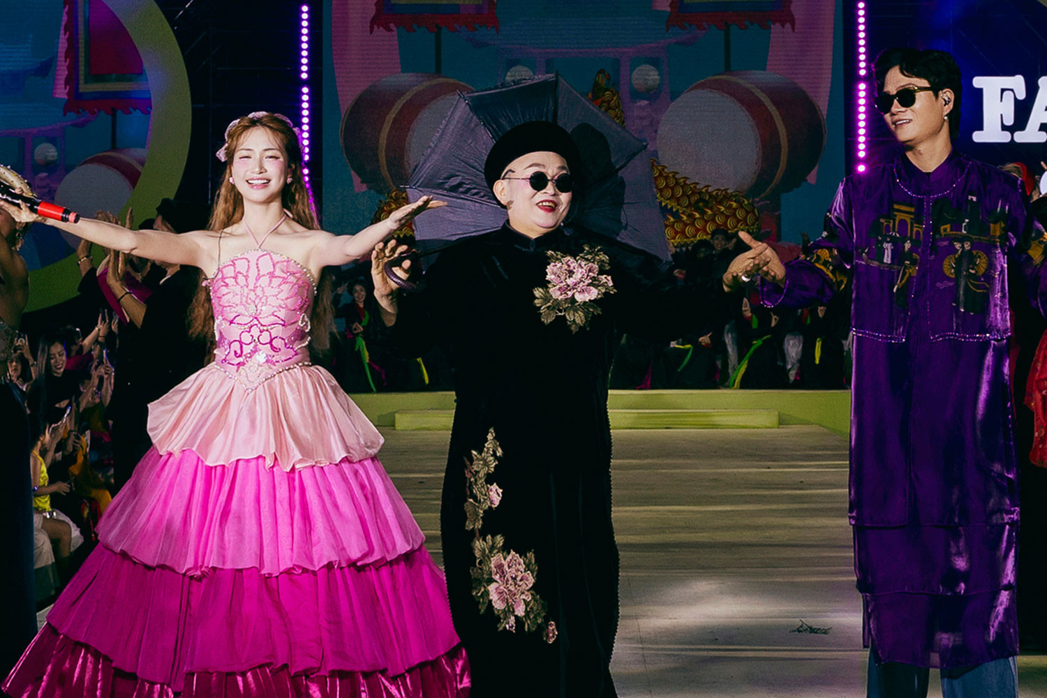 Lần đầu tiên một sân khấu runway có sự góp mặt bộ ba đình đám của ca khúc ”Bắc Bling” là Hòa Minzy, Xuân Hinh, Tuấn Cry.