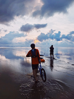 Nhóm tiếp tục đạp xe tới “biển vô cực” và có mặt ở đây lúc 5h10, kịp đón khoảnh khắc bình minh tuyệt đẹp trên biển.